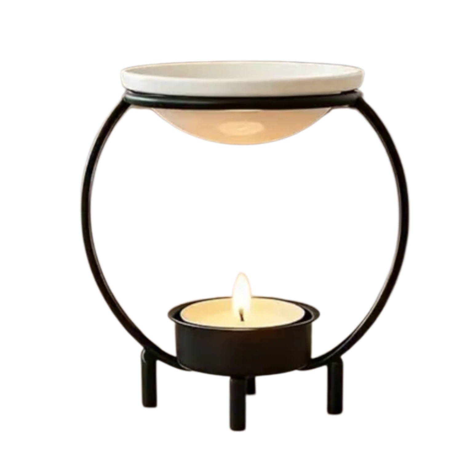 Avec son design épuré et ses lignes aériennes, le brûleur Noxia incarne l’élégance de la nuit. Son anneau noir mat suspend une coupelle en céramique blanche qui diffuse délicatement les fragrances de vos fondants parfumés. Une simple flamme suffit pour créer une ambiance chaleureuse, feutrée et apaisante.